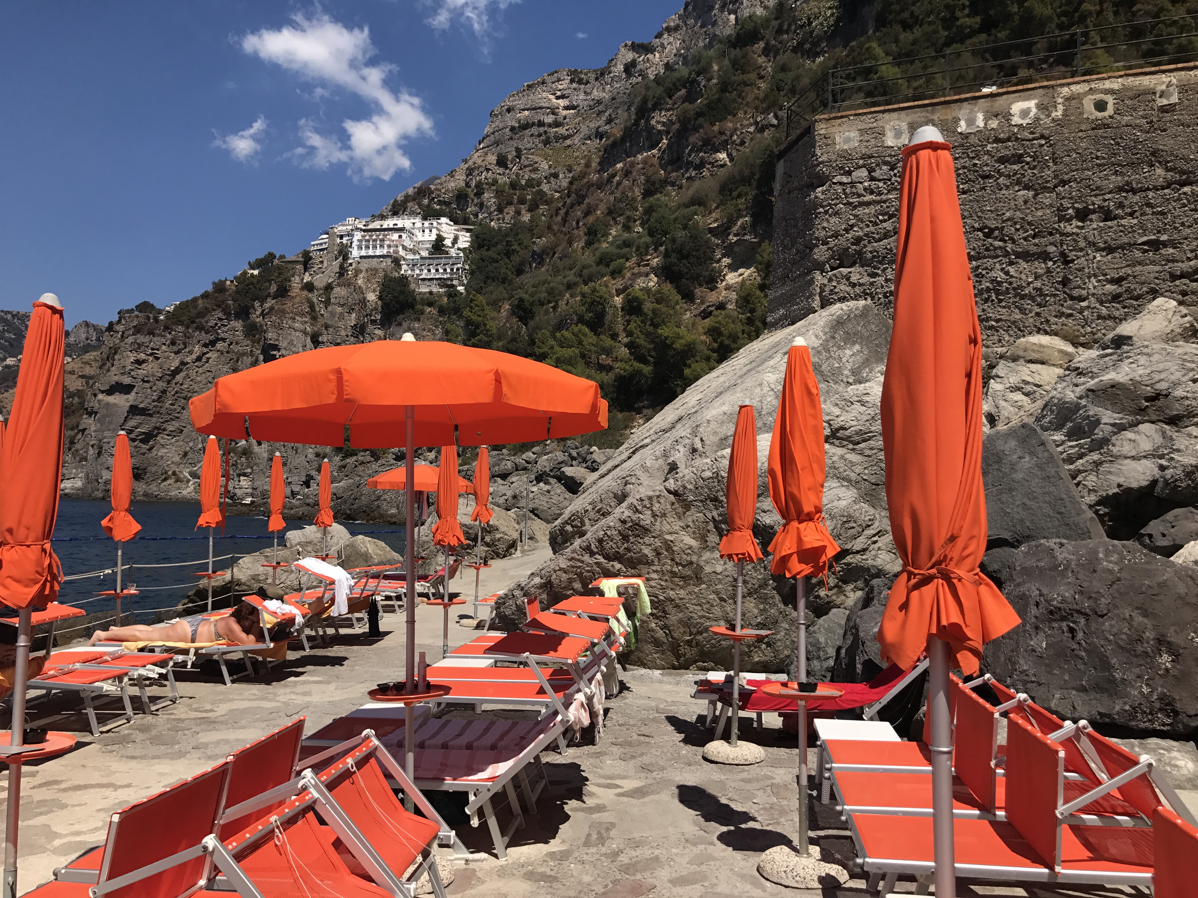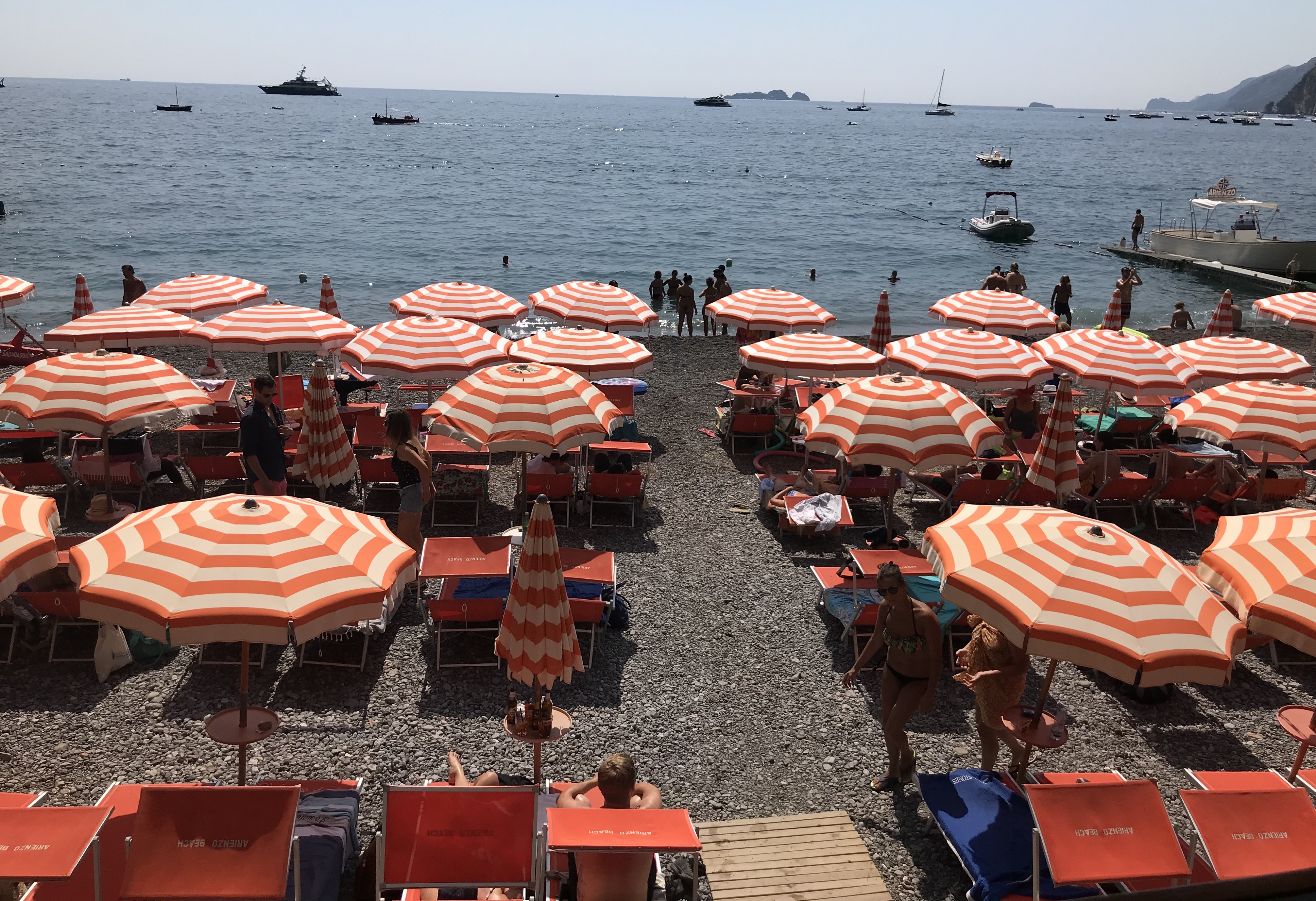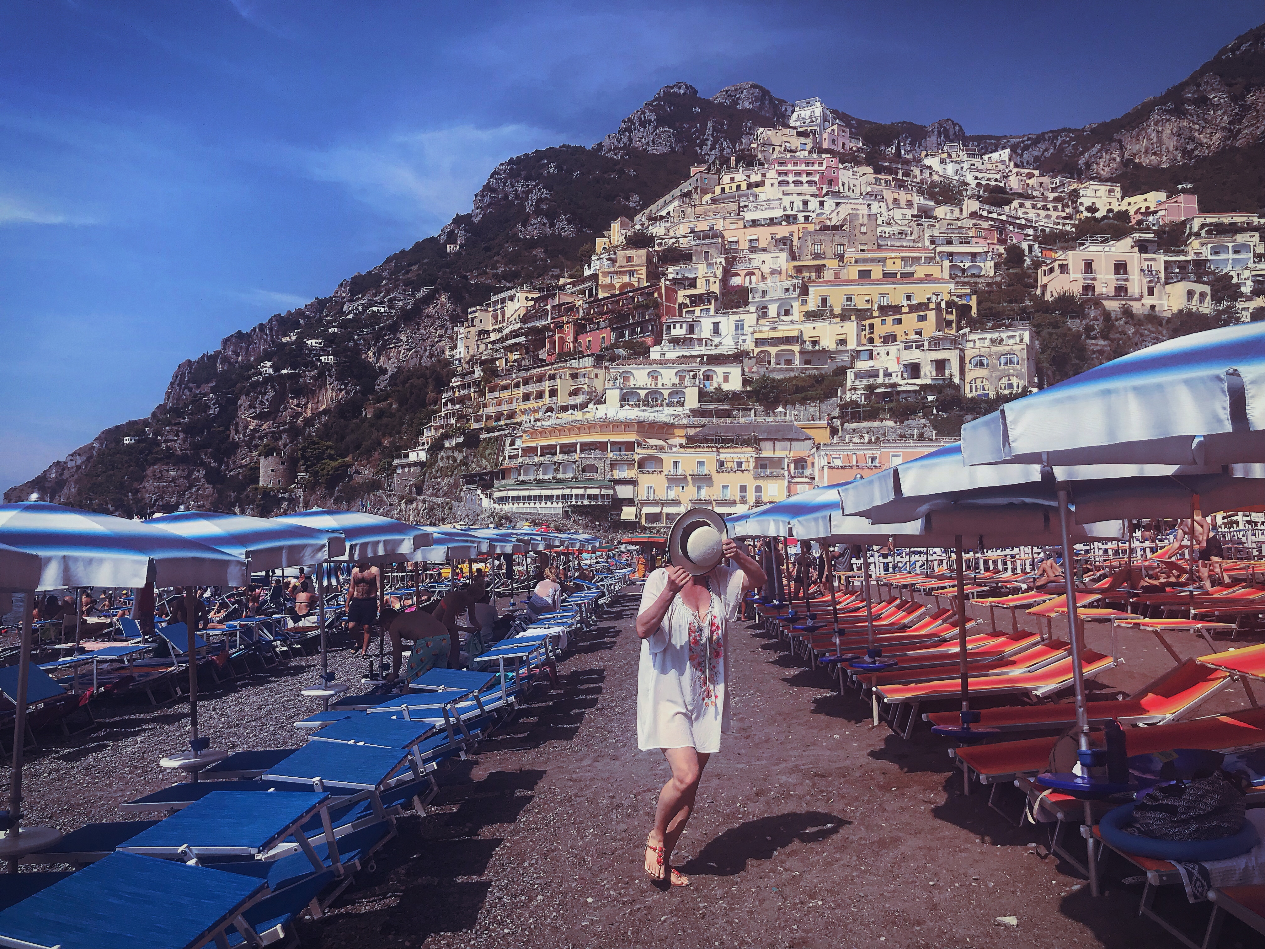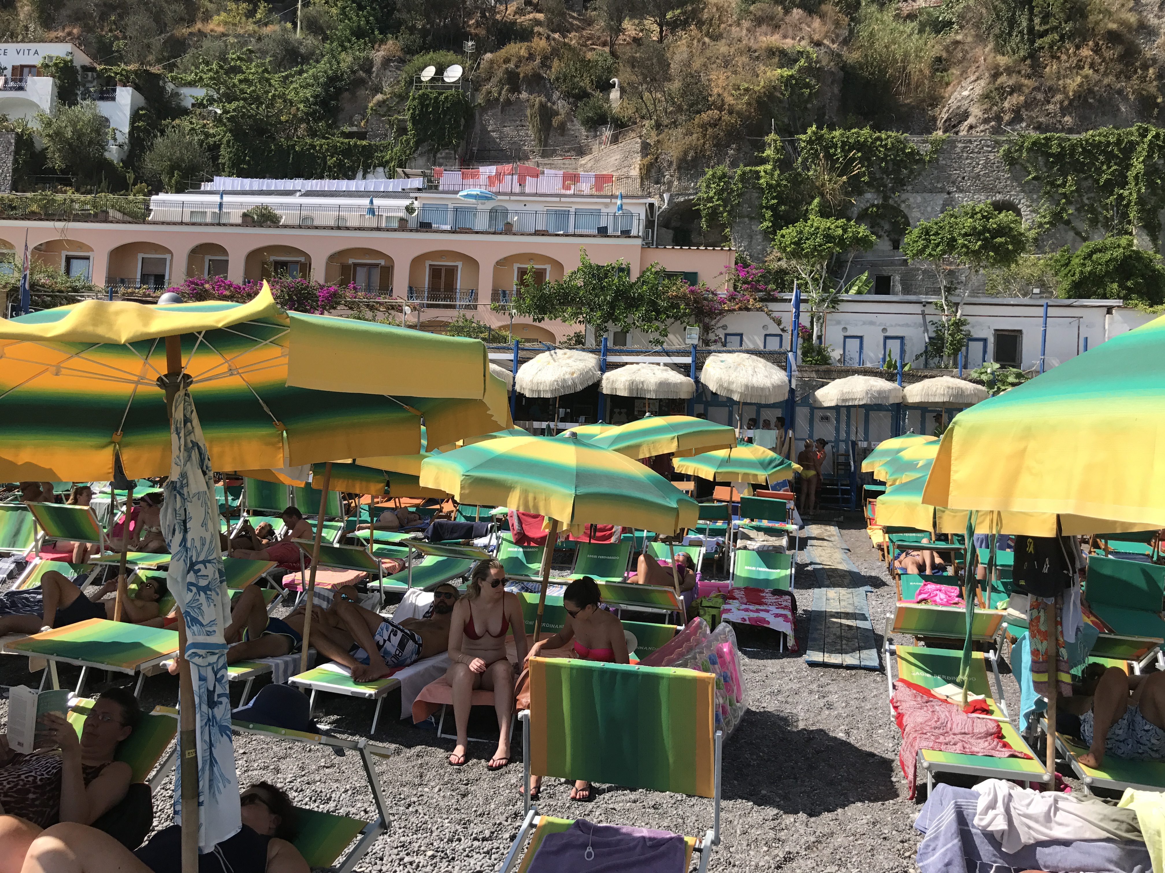 Spiaggia Grande. The big beach in the heart of Positano. You can rent a chair with an umbrella for 20 Euros or you can bring a towel and grab a spot in the free public area. The views of Positano from the beach and water make dealing with the crowds a worthwhile endeavor. Especially for the first timers!