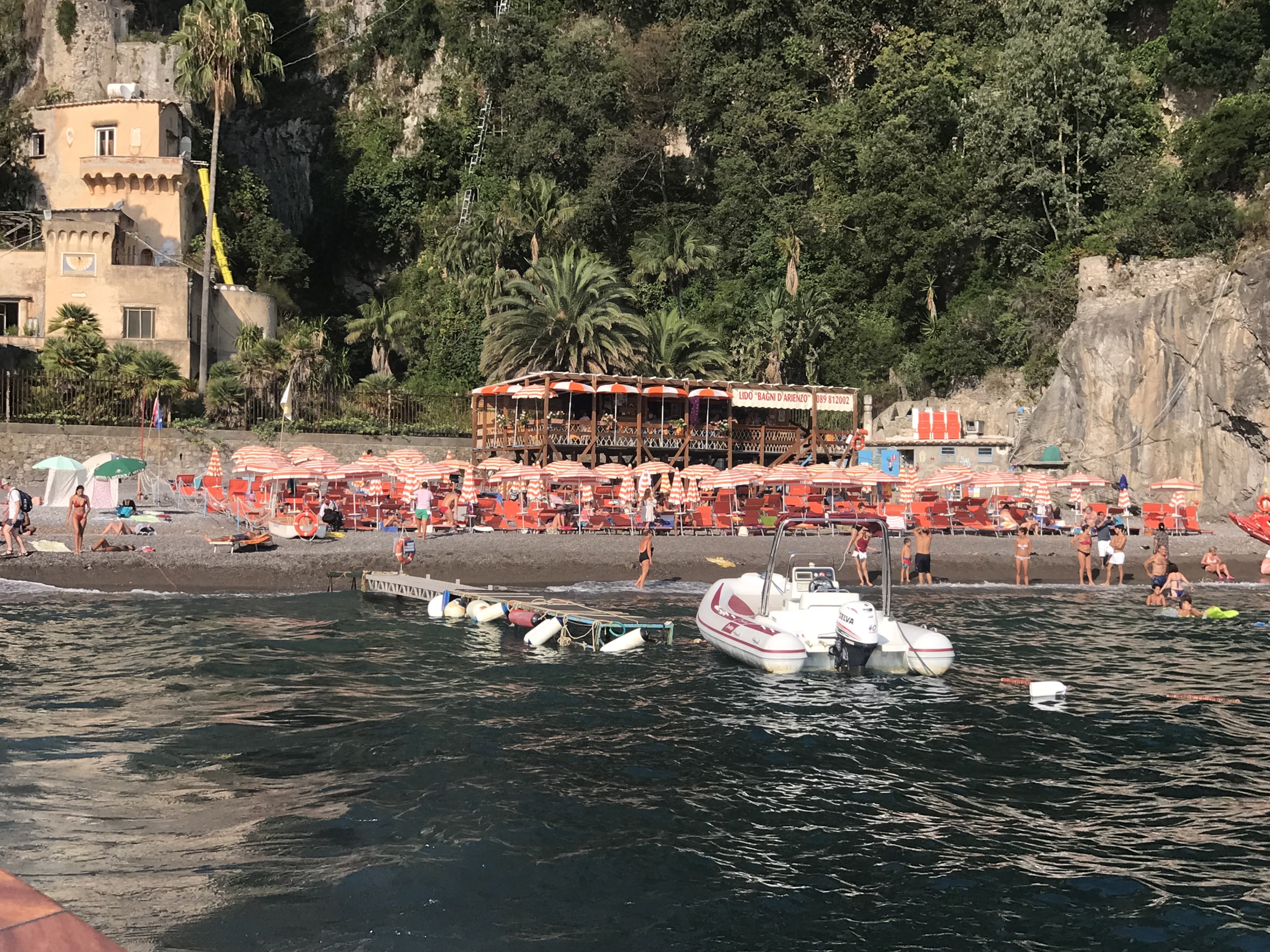 Arienzo Beach. The 300 steps beach. Thats the number of steps up to the main road, but I much prefer going by boat. This beach has both a paid chair zone and a free zone and it’s considerably more peaceful than any of the other beaches I frequent. I’m also quite fond of the restaurant on this beach.
