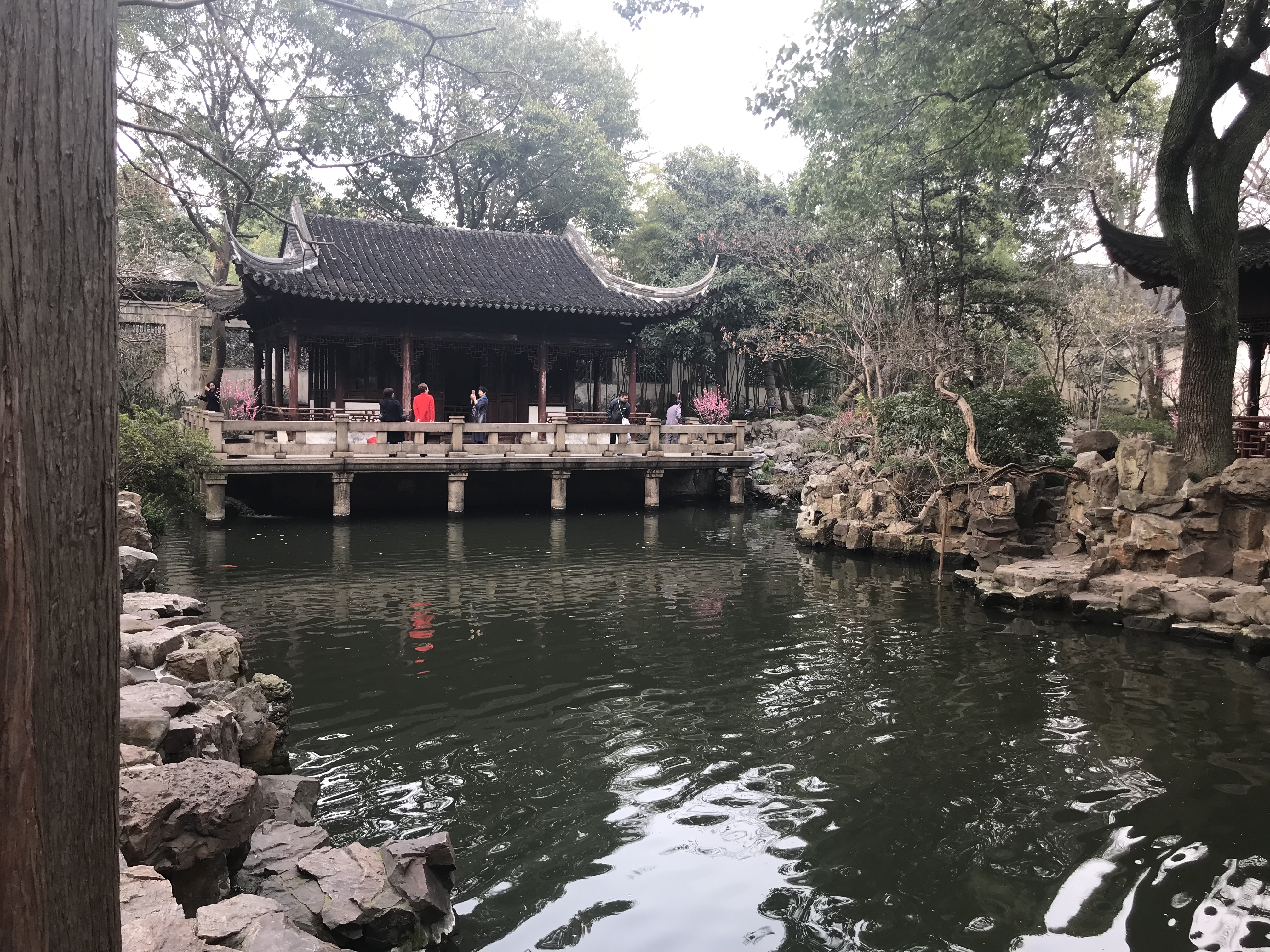 Chinese gardens are not your typical community park. You know, a space carved out in a city that has a green space with trails and maybe a playground, a sport court, and a little pond. Chinese gardens, in their purest form, are actually residences of ancient days. Because construction of days past included wood, and the weather conditions where very dry, each room of a home was built independently. A home would be a collection of little buildings connected by walkways. Why would they do that? To protect from total destruction should there be a fire. They might lose the reception room, or building, but everything else would remain intact and reconstruction would be minimal. The very wealthy turned the grounds in-between the buildings into lush gardens with water, coy fish, jade rock sculptures and secret passages. It became an extension of the home and life was lived in the garden.