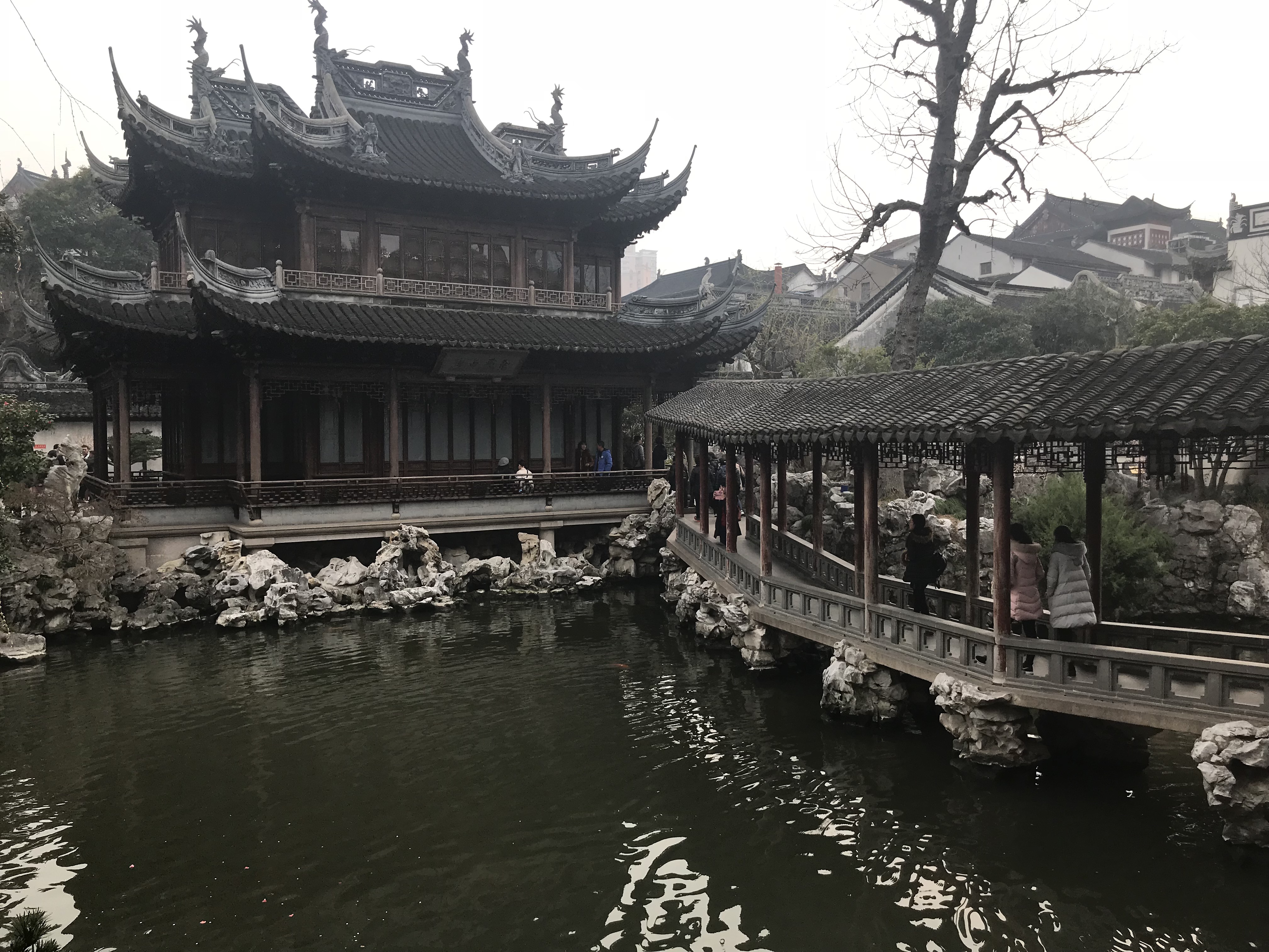 One of the most famous of Chinese Gardens is Yuyuan (pronounced “You”) Garden in Shanghai. The character set for this park means “The Garden of Happiness”! It is a gorgeous 5 acre Ming Dynasty garden and residence that was built in 1559 by Pan Yunduan for his aging father to enjoy. It was the largest and most grand garden of its era in Shanghai but it’s expense eventually helped to ruin the family. It transferred hands several times before ultimately landing with a group of merchants that renovated the grounds and opened it to the public. The gardens possess several buildings, rockeries, ponds filled with coy fish, bridges and the famous Jade rock. Cost for entrance is minimal at about 40 yuan.